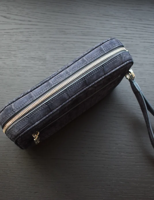 blue nubuck crocodile pouch