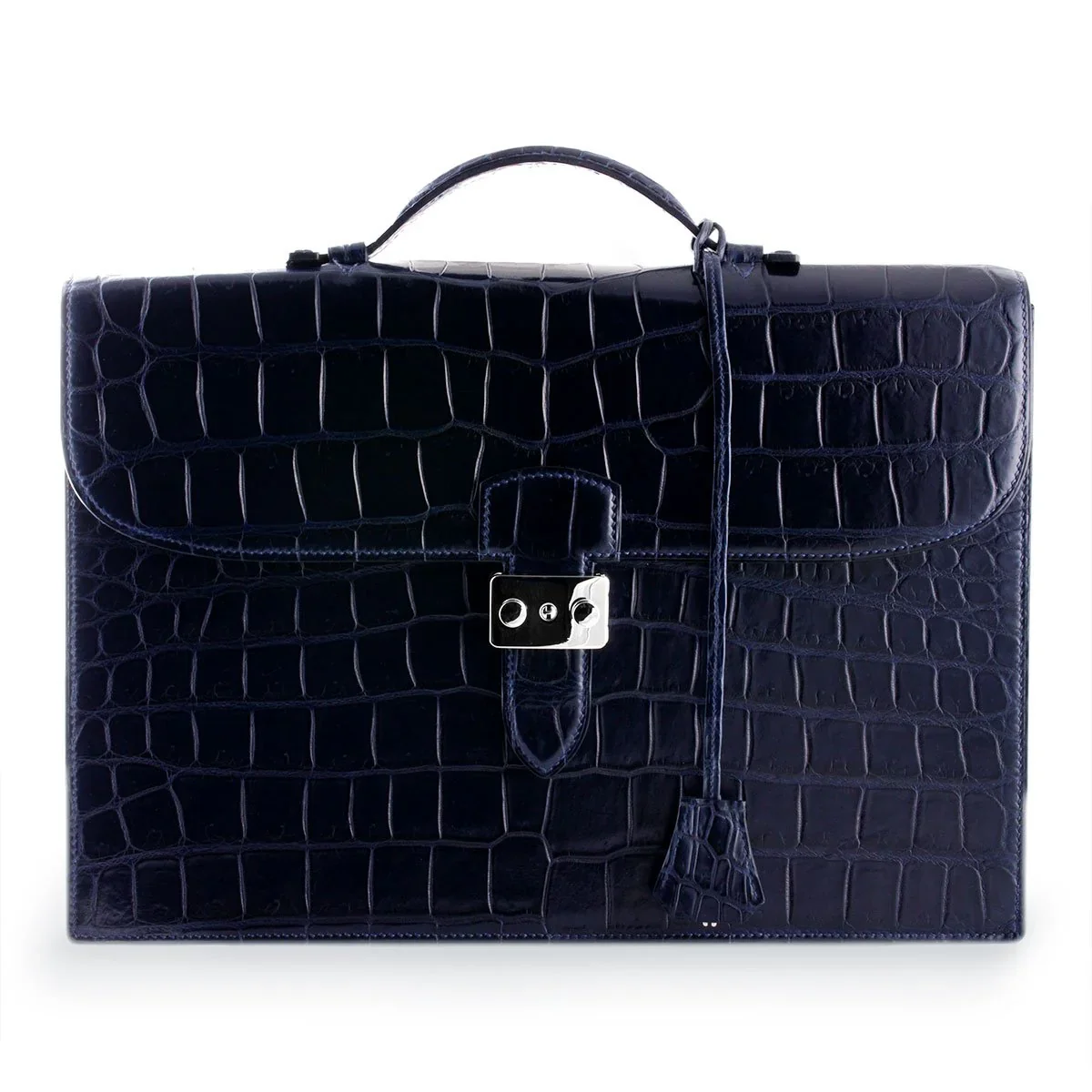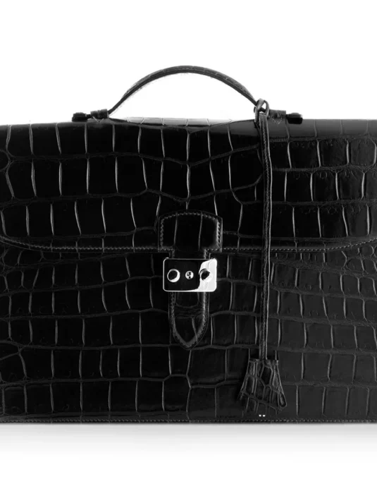 Maletín de hombre de piel de cocodrilo mate color marrón claro